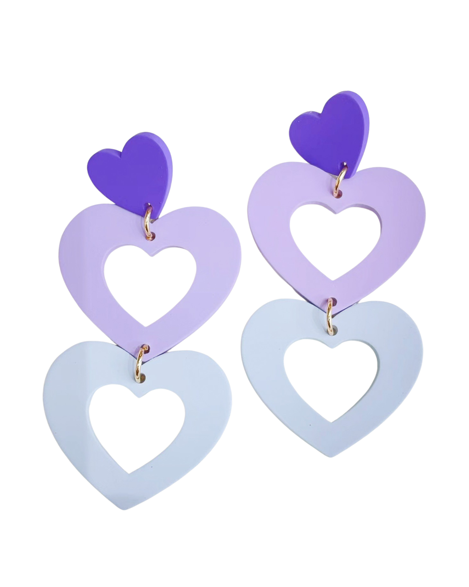Inspired by the Queen of Hearts herself... These triple heart earrings in Lavender, Mauve & Sky blue are a crowd hit!