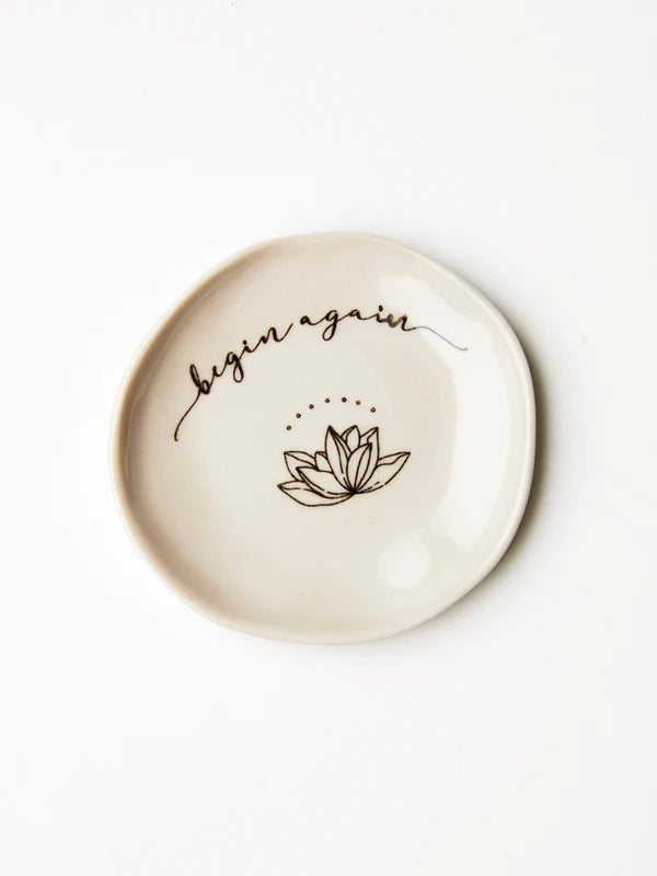 Jones & Co charming earthenware dish with a motivating message: "Begin Again." This small but inspiring dish is the perfect way to remind yourself to seize the moment and chase your dreams.