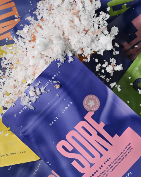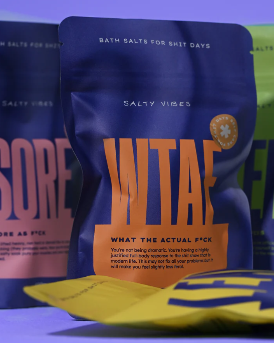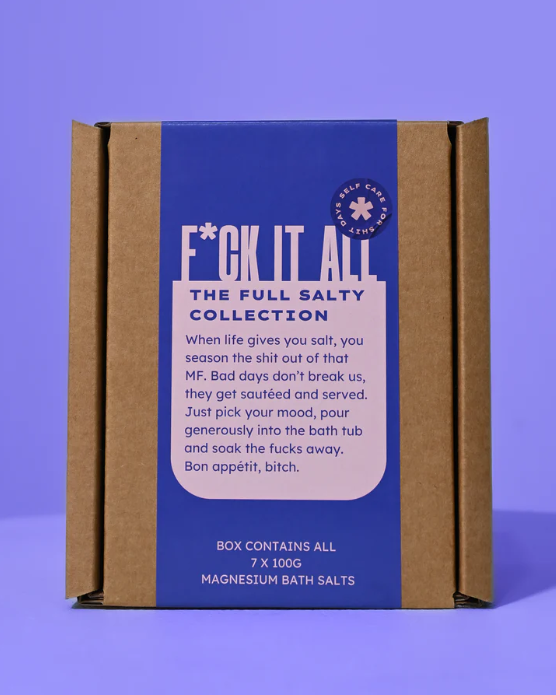 Inside: every salty mood we’ve ever made, in single-serve form. That’s 7 magnesium bath soaks to match the crisis of the week: rage, burnout, heartbreak, joy or just plain ‘f*ck this.